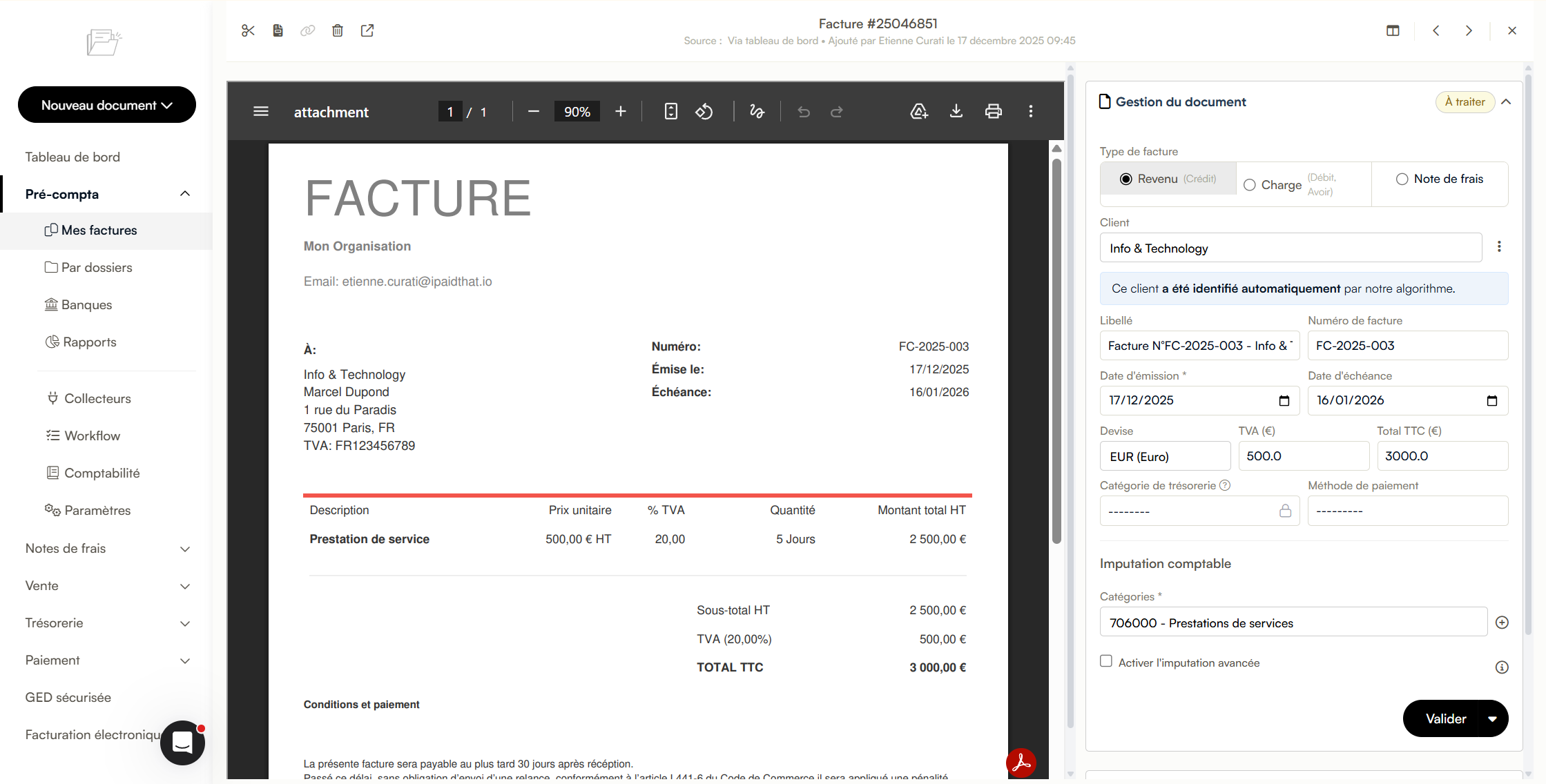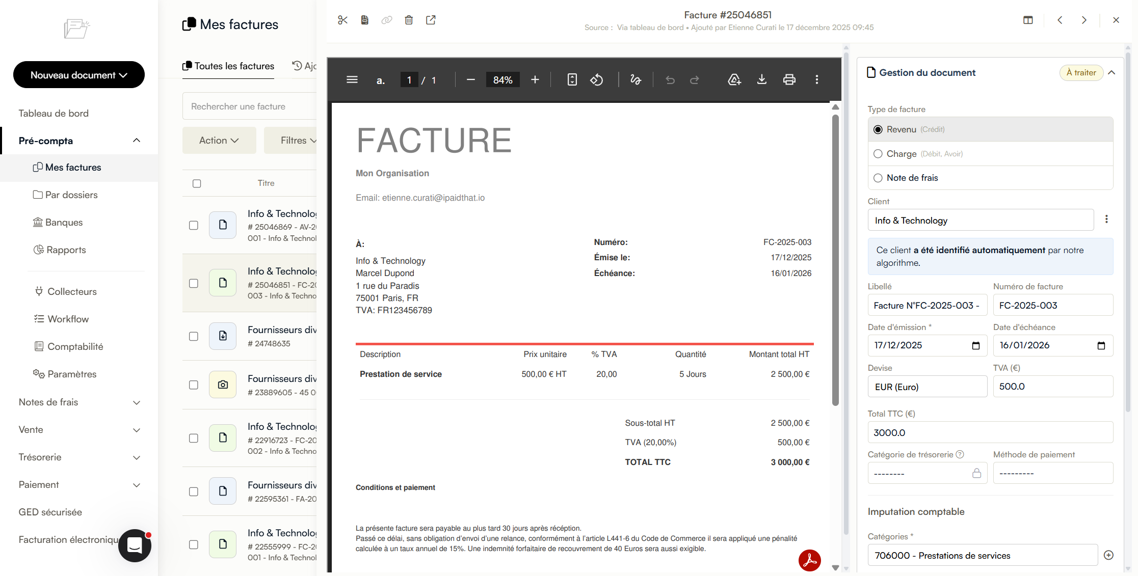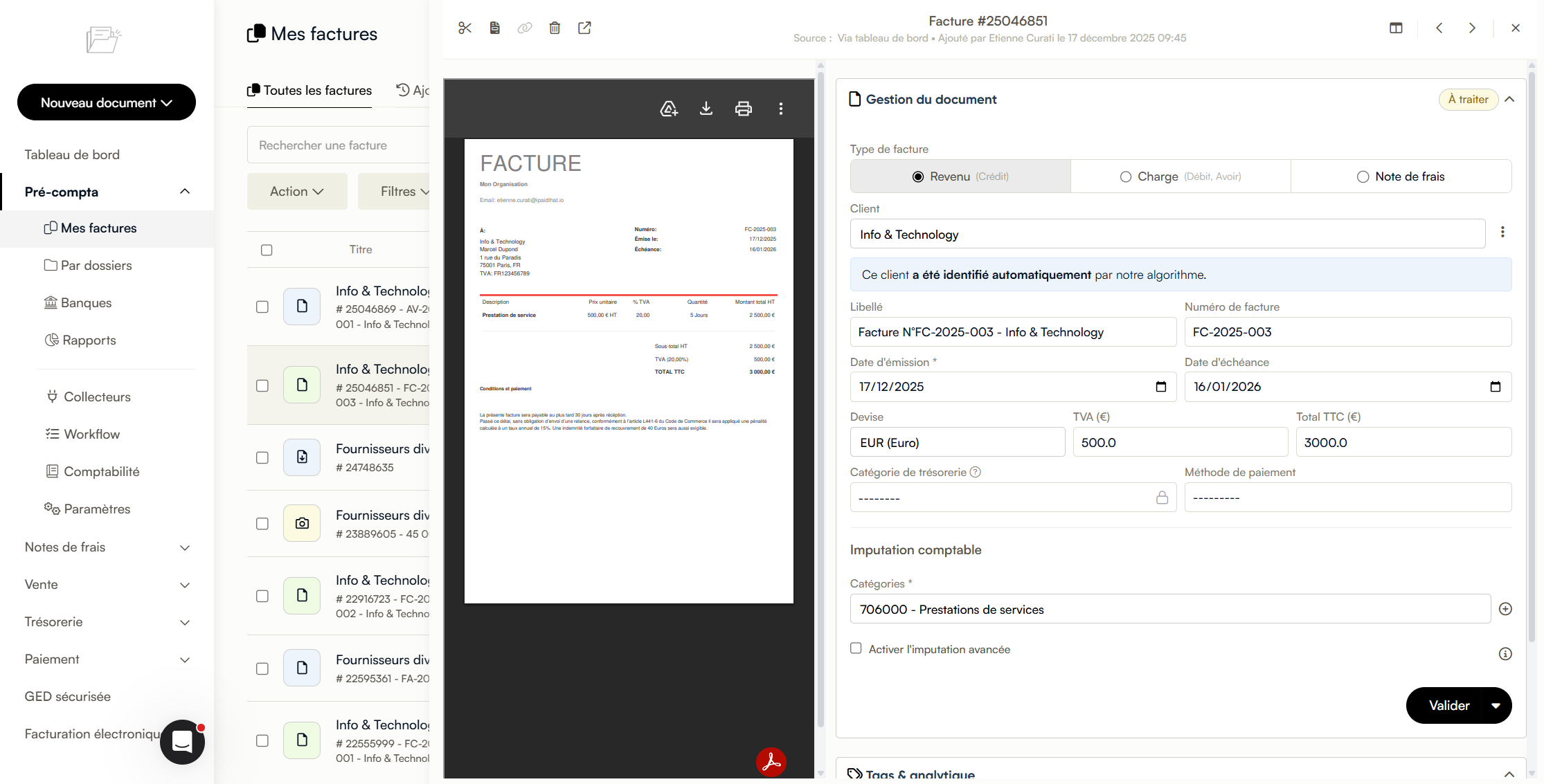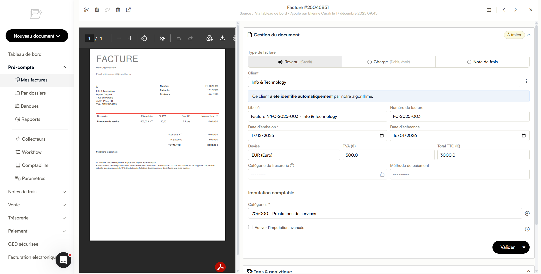 À noter : Cette fonctionnalité s'applique aux factures émanant de l'année 2026 pour assurer un suivi cohérent de votre comptabilité actuelle.