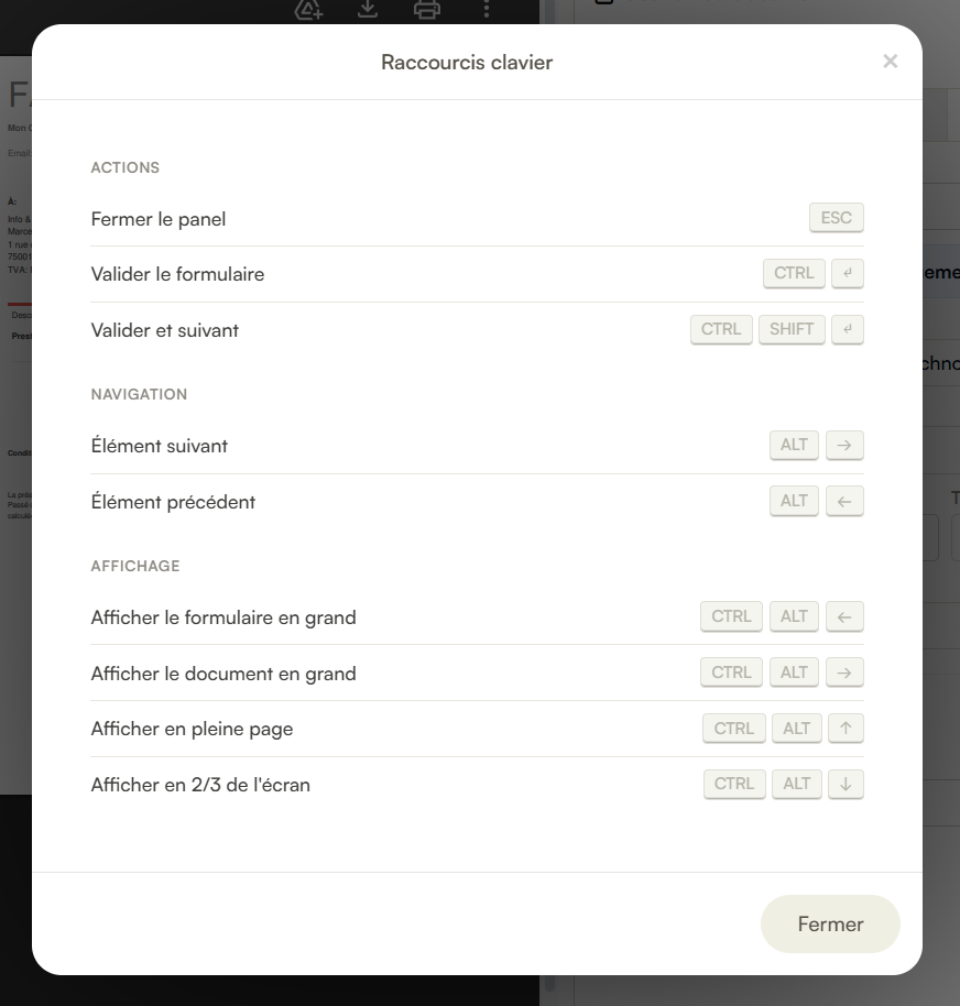 Navigation fluide : Passez d'une facture à l'autre avec les nouvelles flèches de direction ou vos raccourcis clavier.
