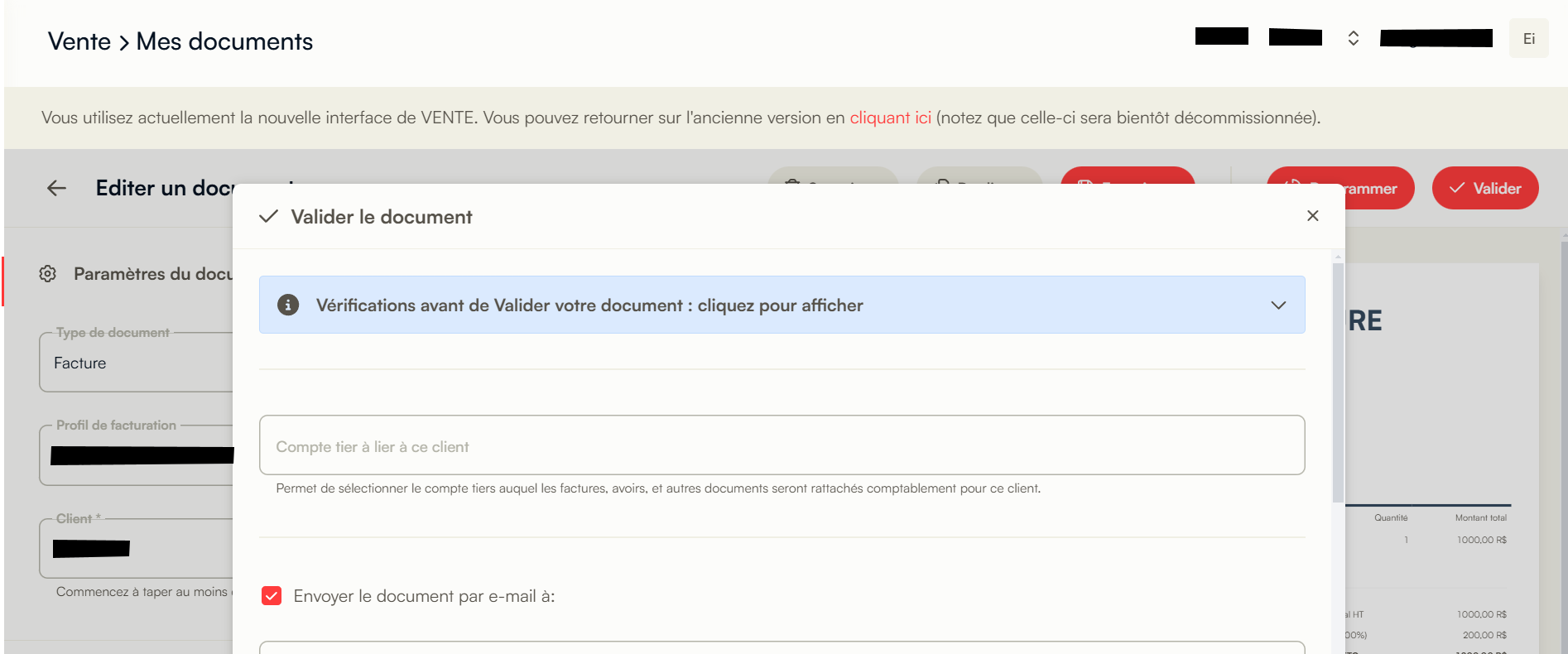 Si cette étape n'a pas été effectuée, un rappel s'affichera lors de la validation de votre facture, vous offrant la possibilité de réaliser cette association à ce moment-là.