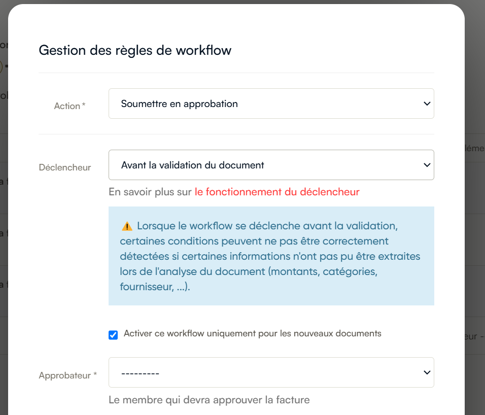 L’approbation d’une facture n’était possible qu’après sa validation. Nous avons donc ajouté la possibilité d’approuver une facture avant sa validation.